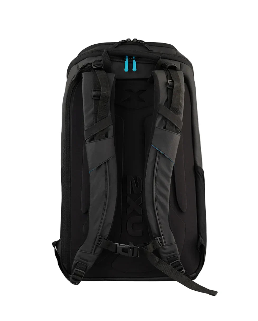 Multiple internal storage pouches for segmentation of your swim gear, cycle kit, race belts and running shoes, side water bottle holders, external helmet attachments, quick side-access laptop compartment and a waterproof pouch solve all your storage needs.